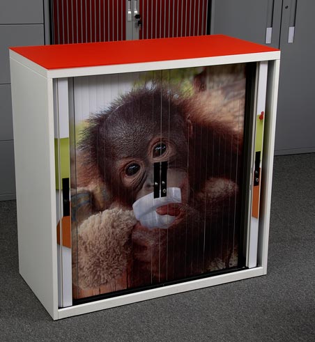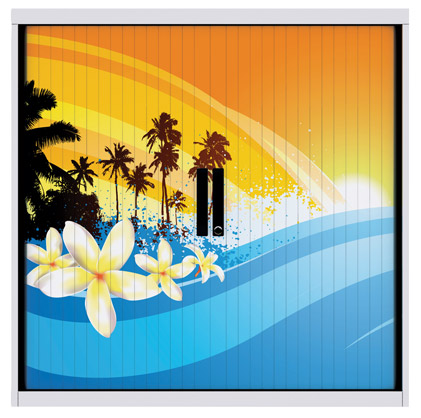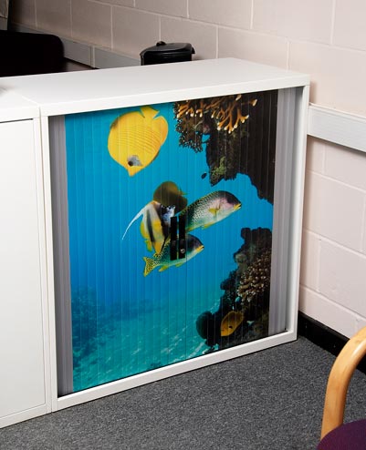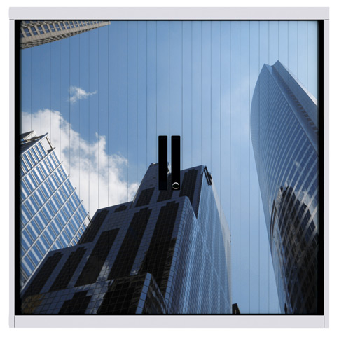 An innovation in tambour design: IGT is the Graphic Tambour range that allows any digital image, graphic or logo* to be transferred, using high quality materials, to your tambour door units. The images shown on this page are examples only. Simply supply your own photography, company logo or illustration in a digital format* and let us apply it to any s:l tambour blind.